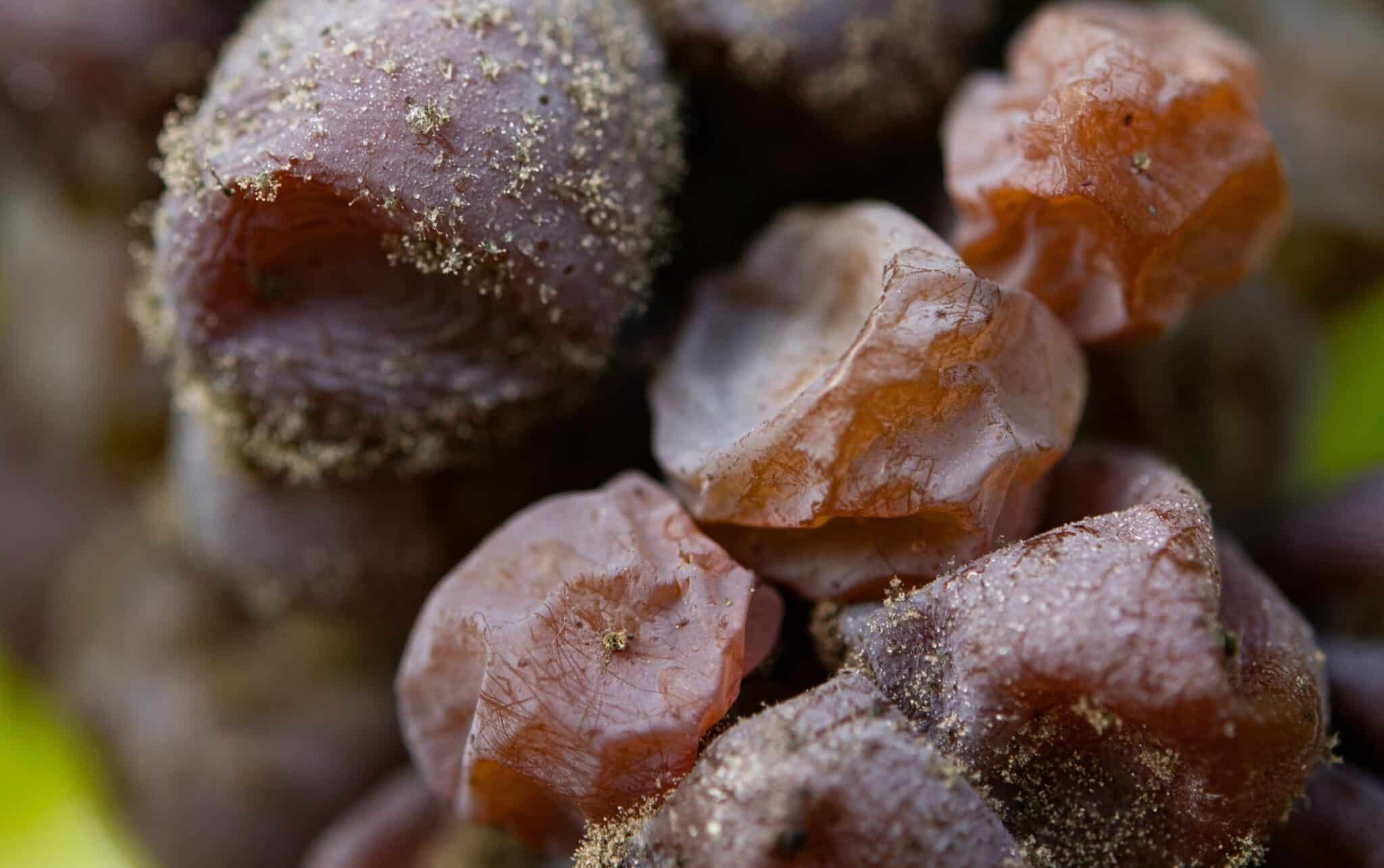 A l’est nous avons la chance de pouvoir récolter nos raisins très souvent, pour ne pas dire presque toujours, conquis par un merveilleux qu’est le BOTRYTIS. Ce champignon qui recouvre peu à peu les baies permet aux raisins de se dessécher tranquillement et naturellement.